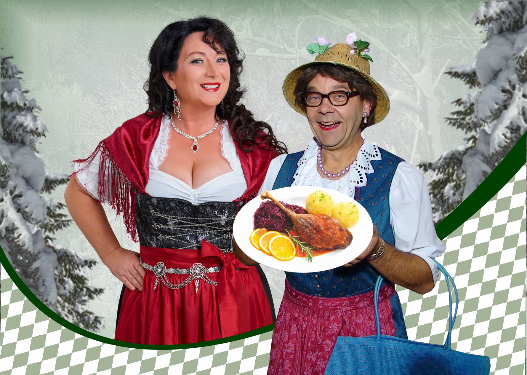Fröhliches, einzigartiges und facettenreiches Unterhaltungsprogramm mit Musik, Parodie und Travestie inklusive Mittagessen und Kaffeegedeck